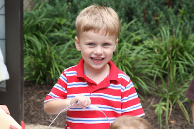 Today was Clayton's first day of Pre-K. I am blown away by how big both my boys look in these pictures (sniff sniff). Clayton had a great time and it was so nice going to Wal Mart and Target with only one child! I made the mistake of waiting till the last minute to get Clayton a lunch box (he won't need it till next week) and every where I went they were out of them. Finally at my 4th stop- I was able to find Clayton the one he wanted- a Star Wars lunch box. I gave it to him when I picked him up and he was so excited. He has taken it with him every where today- including to bed! Andrew missed his brother while he was gone and gave him the biggest hug when he came out of his class- it was so cute.